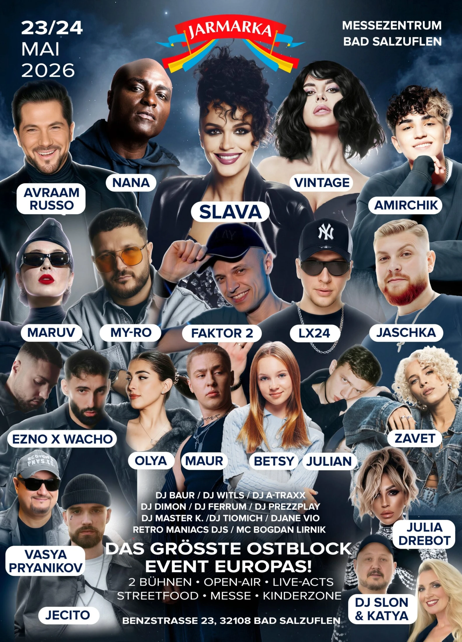Jarmarka ist das größte interkulturelle Fest für Menschen mit Wurzeln in den Ländern der ehemaligen Sowjetunion in Deutschland. Unsere Vision ist es, eine lebendige Plattform zu schaffen, die kulturelle Identität stärkt, Gemeinschaft fördert und Vielfalt feiert – durch ein einzigartiges Erlebnis aus Festival, Messe, Jahrmarkt und Open-Air-Event.