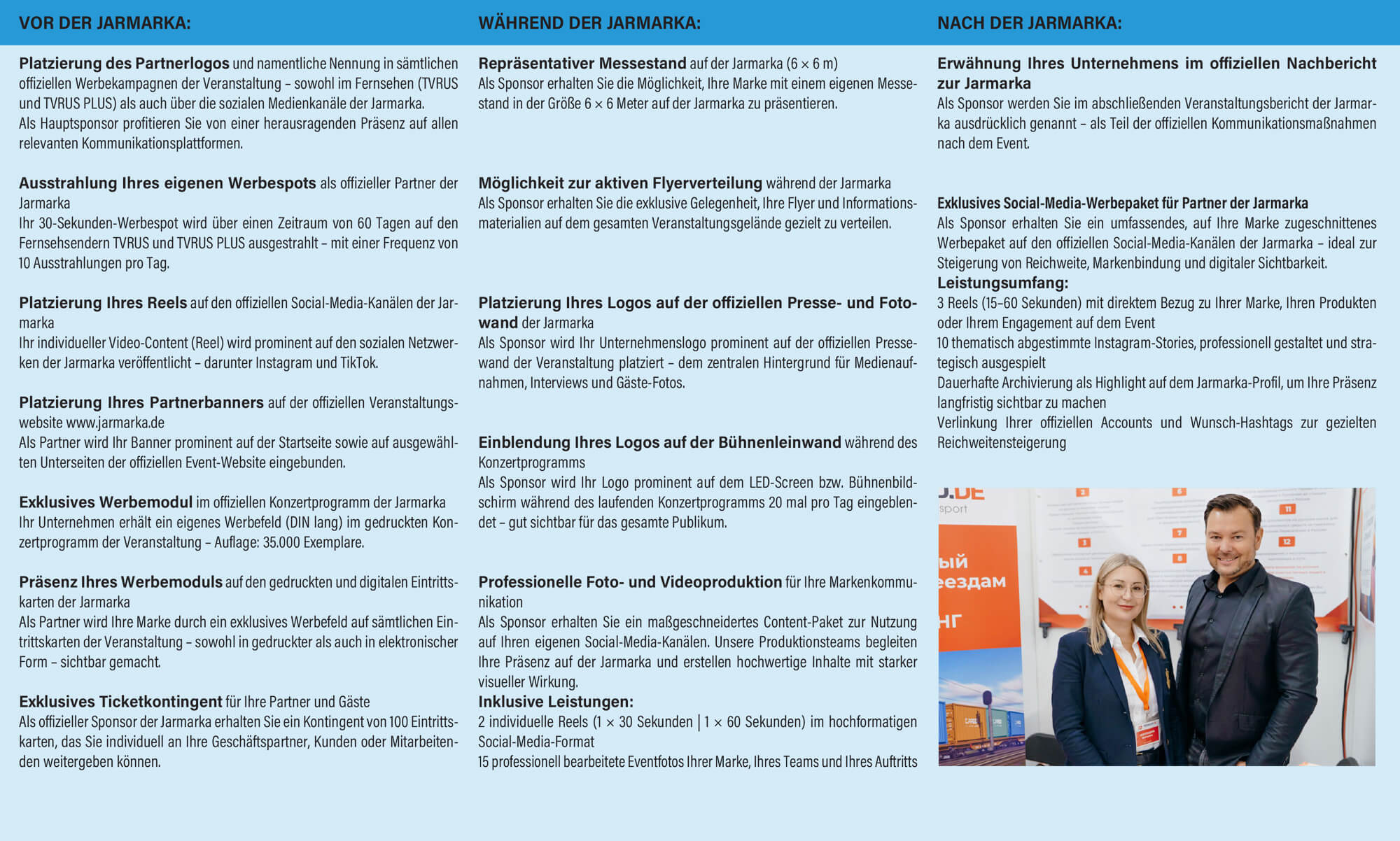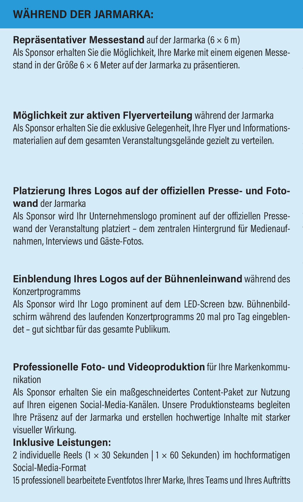 Wenn Sie an einer Unterstützung der Jarmarka als Sponsor oder Partner interessiert sind, kontaktieren Sie uns: